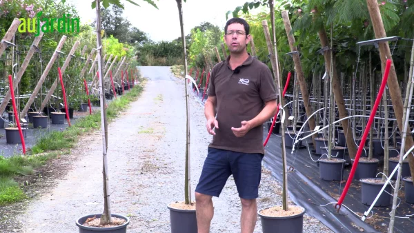 À la plantation, pensez à réaliser un grand trou (50 cm de profondeur par 50 cm de côtés) et, chose cruciale : placez un tuteur solide pour soutenir la croissance de l'arbre. Comme le dit Marc-Henri, 'plante qui bouge = plante qui meurt', c'est bien connu !