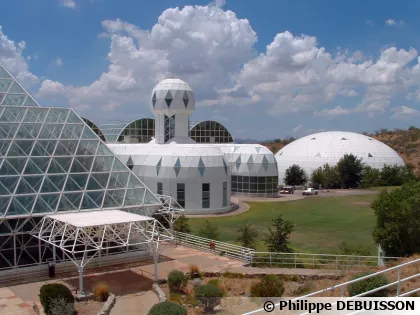 « Biosphère 2 » est située en plein désert d’Arizona à approximativement 20 minutes au Nord de la ville de Tucson et 90 minutes au Sud de Phoenix.