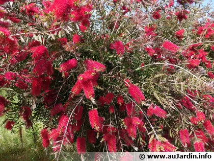 Le Callistemon est un arbuste au port touffu, prenant une charmante forme retombante au fil du temps. Son feuillage persistant est porté par des tiges rigides. Ne dépassant généralement pas 2 à