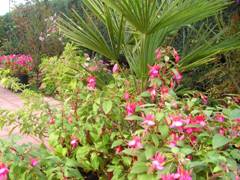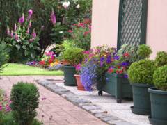 Pour faire des beaux massifs, il faut savoir échelonner les floraisons : de mars à fin avril (tulipes, jacinthes, pensées), puis les premières annuelles en mai (bégonias gracillis, pétunias, sanvitalia, astéricus maritimus, etc…) les annuelles gélives que je sors de mon jardin d'hiver (solanum, lantana, fushia, etc…) puis les vivaces prennent le relai (méconepsis, edelweiss, aconit, lis, hosta, aster du cap, rhododendron, fushia, acanthe dorée, etc…) tout cela doit être mis harmonieusement pour avoir toujours une floraison continue.