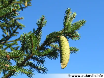 L'épicéa est un conifère qui fait partie du genre Picea comprenant une quarantaine d'espèces d'arbres poussant des les zones fraîches de l'hémisphère Nord. Très rustiques, ils aiment le plein soleil et les sols à tendance acide, frais et bien drainés.