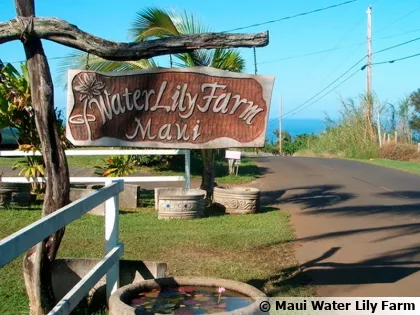 La Maui Water Lily Farm est specialisée dans la culture et la vente de fleurs de nénuphars ici appelées "water lily" et d'autres plantes d'eau. Nous l'avons créée il y a un peu plus de 2 ans. Elle est située sur la cote nord de l'ile de Maui a Hawaii.