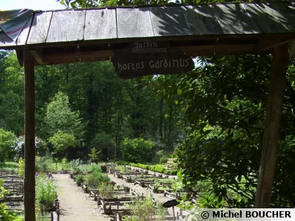 Après la découverte de vestiges d’une maison forte au cœur de la forêt de Courcy, les membres de l’association A.R.E.G.H.A.T ont décidé de créer un site qui présenterait un aperçu à 360° de la vie au Moyen-âge. La redécouverte d’espèces végétales qui existaient à cette époque poussa M. Boucher Rémy (horticulteur à la retraite) à recréer un jardin médiéval, dans les années 90. Débuté avec une quantité restreinte de plantes, le jardin recense à ce jour plus de 800 espèces végétales utilisées dans les campagnes à cette époque.