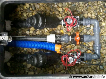 Voici un exemple illustré d'un montage d'électrovannes dans un regard. Celui, comme ceux qui pourraient suivre, n'est qu'un exemple parmi de multiples solutions ou préférences que chaque installateur peut avoir. Il n'en reste pas moins que certains principes de base sont énoncés.