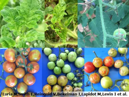 Sur la tomate les folioles et les feuilles sont atteintes de chlorose, marbrures et mosaïques, elles se déforment. Sur les pédoncules floraux on note la présence de nécroses. Les fruits présentent des taches jaunes et brunes et une rugosité de la peau. La maturation est irrégulière.