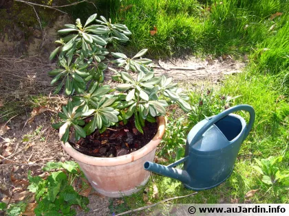 Le printemps est une période favorable pour le rempotage. Nous vous proposons de suivre en images le rempotage d'un pittosporum un peu à l'étroit dans son pot en plastique.