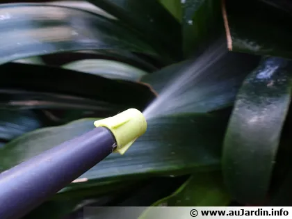 Pulvérisez votre solution sur toutes les parties aériennes des plantes. N'oubliez pas les plis des écorces, le revers des feuilles et le collet où les cochenilles adorent se cacher. Renouvelez l'opération 5 jours plus tard si nécessaire.
