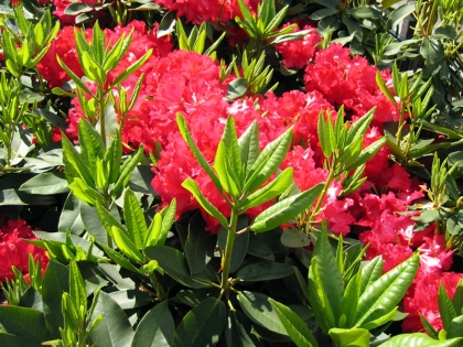 Passons aux arbustes : en massifs ombragés pour un effet opulent, les camélias se déclinent en plus de 250 espèces et variétés permettant d'échelonner les floraisons sur de longs mois. Les azalées et rhododendrons leur seront associés afin de faire un clin d’œil au romantisme des jardins à l’anglaise. Mariez-les aux Pieris au feuillage découpé et rougeoyant et aux hydrangéas aux lourds pompons variant du blanc pur au bleu profond en passant par toutes les nuances de roses selon les variétés. La gaulthérie aux douces clochettes pastels se transformant en perles blanches, roses ou mauves dont les oiseaux se régalent, mais aussi le skimmia qui les intéressera tout autant viendront compléter harmonieusement le tableau de leurs baies si ornementales.