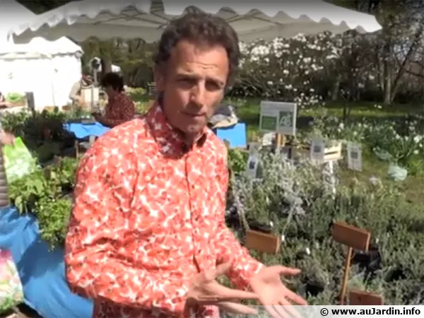 Laurent BOURGEOIS de la pépinière AROM'ANTIQUE nous présente différents types de thyms comme le thym à thymol, le thyme à linalol, le thym vert, ... et nous conseille sur leur culture.