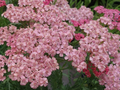 - Achillea millefolium ‘Lilac Beauty’ est un dégradé de rose et mauve, tandis que Achillea millefolium ‘Queen Cerise’ est rose plus vif.