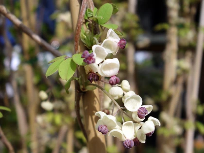 Akebia quinata ‘Alba’, aux intéressantes fleurs blanches
