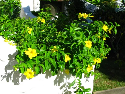 - Allamanda cathartica 'Hendersonii' aux fleurs jaunes d'or