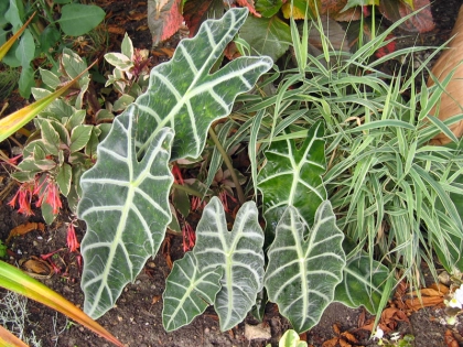 Le genre Alocasia comprend une soixantaine d'espèces, dont Alocasia macrorrhiza, cultivée dans les iles Samoa pour en consommer le corme.
