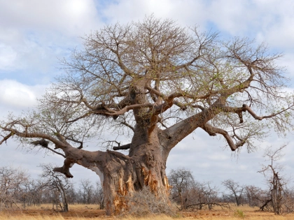 Adansonia digitata, le baobab africain, est un grand arbre xérophyte appartenant à la famille des Malvacées ou Bombacacées. Il est originaire des régions arides d’Afrique, limitée en haut du continent par le désert et en bas par les températures gélives. Appelé couramment arbre-bouteille à cause de son tronc gonflé en réserve d’eau, il est l’arbre emblématique de nombreux Africains, d’autant plus vénérable qu’il a une longévité de 2000 ans.