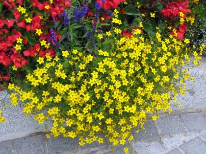 Le port retombant et le caractère gélif du bidens à feuilles de férule en font une plante parfaite pour suspensions ou jardinières. Le jaune vif de ses fleurs appelle, quant à lui, d'autres couleurs soutenues ; aussi, il se marie à merveille avec des géraniums rouges, des pétunias violets ou des sauges bleues.