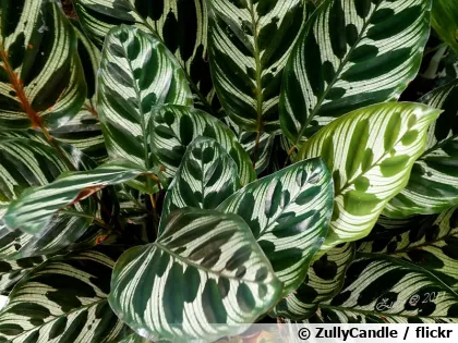 - Calathea zebrina aux belles feuilles vertes claires et zébrées