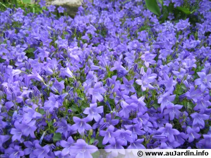 La campagnule des muraille est belle au sol dans un massif, au premier plan, accompagnée de petits Geranium (pas Pelargonium !!), de saxifrages ou potentilles herbacées. Il ne faut pas hésiter à la placer au bord d’une terrasse qu’elle « mangera » un peu.