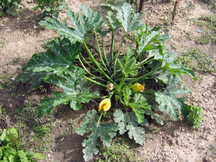 Plants achetés : les plants achetés gagnent à être repiqués en grand pot avec votre terre de jardin mélangé à un terreau très riche : les racines de la courgette s’habituent ainsi à votre terre. Sinon il arrive que les racines, généralement serrées dans les petits pots, restent coincées dans leur cube de terreau, trop différent de la terre de votre jardin en texture.