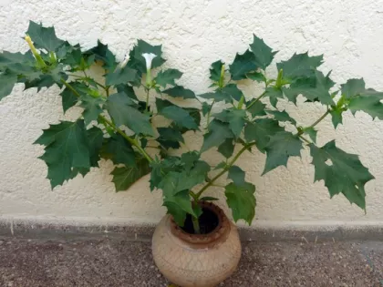 Le Datura stramonium est une belle plante qui pousse à l'état sauvage sur les terrains en friches, dans les champs et même sur les décombres. Bien connue pour sa dangerosité, elle reste cependant un sujet ornemental et facile de culture.