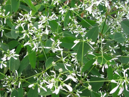 Euphorbia hypercifolia, l’euphorbe à feuilles de millepertuis est une plante subtropicale appartenant à la famille des Euphorbiacées. L’euphorbe à feuilles de millepertuis est plutôt un complexe de plusieurs espèces, originaires des climats chauds américains, mais naturalisées en tant qu’adventice dans de nombreuses parties du monde. Nous, Européens, ne la connaissons que sous une forme hybride très attrayante, apparue spontanément, la variété 'Diamond Frost', officiellement Euphorbia hypericifolia 'Inneuphdia'. Elle est vendue en tant que plante de balcon ou de massif, vivace, mais gélive, souvent cultivée comme une annuelle.