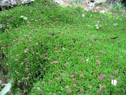 Avec le temps, la Globularia cordifolia forme de vastes et très beaux tapis, relativement denses et touffus, d'où se dresse, à partir de mai, une forêt de tiges florales courbées.