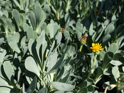 Hertia cheirifolia, anciennement Othonna cheirifolia, est appelé plus couramment queue de castor ou othonne à feuilles de giroflée. C’est une plante vivace basse appartenant à la famille des Astéracées. Hertia cheirifolia est un sous-arbrisseau originaire de Tunisie et d’Algérie. Son origine nord-africaine, en fait une excellente plante méditerranéenne, plus rustique qu’on pourrait penser, et se trouve notamment, parfaitement adaptée pour les bords de mer en climat océanique.