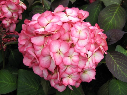 - Hydrangea serrata 'Tiara' avec ses grosses fleurs plates