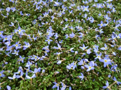 En fait, Houstonia caerulea se développe très bien sur des portions de terrain, assez pauvre où les autres végétaux ont du mal à se développer : elle fait merveille lorsqu’elle se naturalise dans une pelouse ombragée envahie par la mousse, avec laquelle elle est capable de rivaliser, ou remplit une pelouse ensoleillée trop dégarnie. L’houstonie bleue se cultive aussi avec succès dans une rocaille, elle est idéale pour un jardin de gravier ou pour agrémenter les interstices d’un dallage planté.