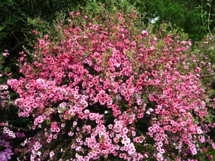 De nombreuses variétés :Leptospermum scoparium ‘Pink Cascade’ retombant aux fleurs roses