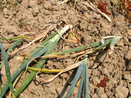 Pendant la culture de l'oignon, éliminez les mauvaises herbes et binez régulièrement entre les rangs. Les jours de sécheresse, apportez de l'eau à vos pieds sinon l'arrosage n'est pas nécessaire.