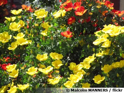 Première espèce à fleurs jaunes connues en Europe, la rose fétide a bien été accueillie par les hybrideurs, elle est parente de nombreux hybrides jaunes ou orangés. La forme botanique et celles qui en sont proches, sont un régal pour les yeux.