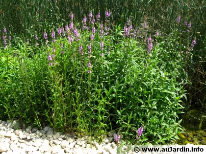 La salicaire met de la hauteur dans les massifs. Elle ne devient envahissante que si le sol est vraiment humide. En pourtour de bassin, si elle est placée à côté de plantes moins vigoureuses, il vaut mieux qu’elle soit contrainte par une limite physique (pot, bâche) et on ne la laisse pas venir en graines, car celles-ci germent spontanément sur un sol humide et nu. Elle ne prend pas le dessus cependant sur les joncs, massettes ou phalaris.