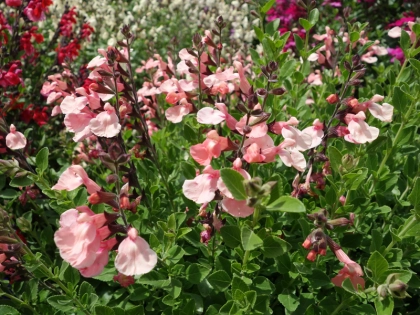 - Salvia x jamensis hybridation de Salvia microphylla et de Salvia greggii, nombreuses couleurs