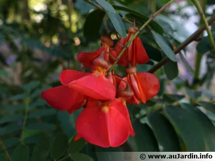 Sesbania punicea, le flamboyant d’Hyères, est un petit arbre subtropical, appartenant à la famille des Fabacées. Sesbania punicea est originaire d’Amérique du Sud, où il vit en zone tropicale humide, dans les marais ou au bord des cours d’eau.